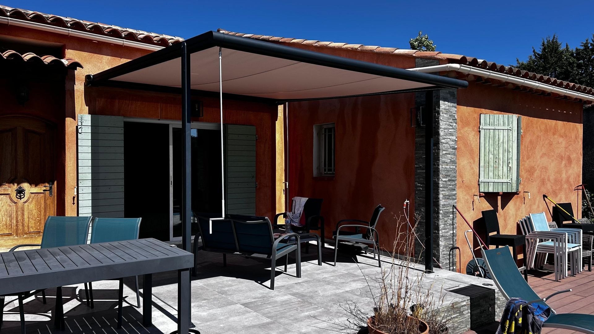 Les pergolas bioclimatiques et les stores extérieurs créent des espaces ombragés, idéaux pour profiter pleinement de votre terrasse.