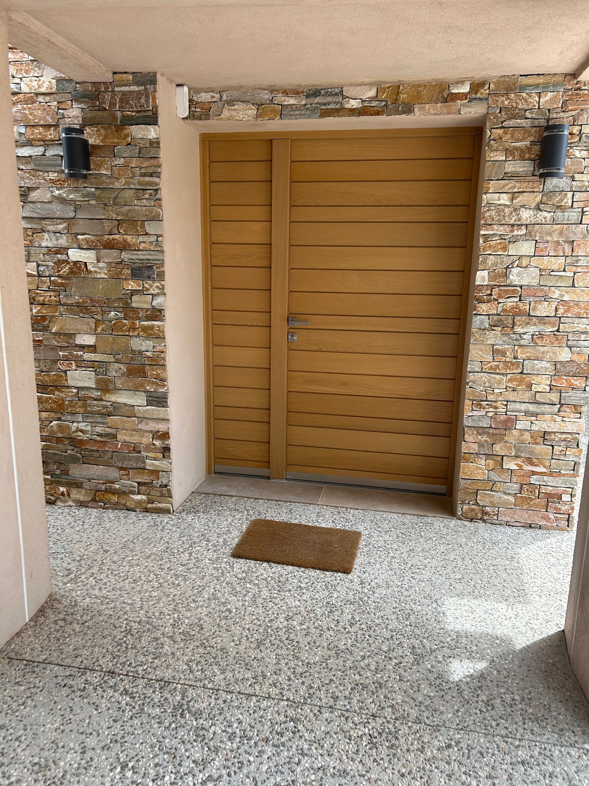 La porte d’entrée Bel’M BelCastel tiercé, installée en version finition chêne clair, offre un style à la fois authentique et contemporain. Son format « tiercé » (un ouvrant principal avec deux fixes latéraux vitrés) permet une entrée lumineuse et majestueuse.